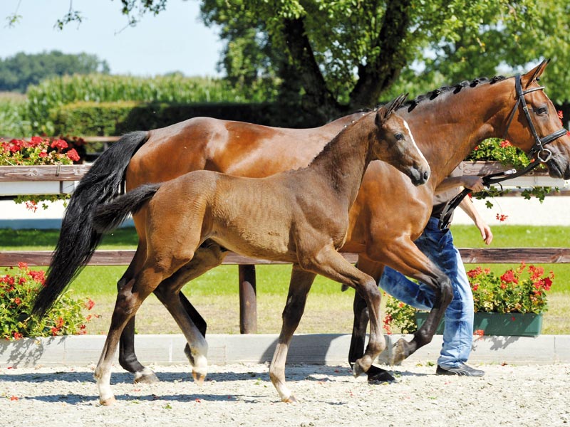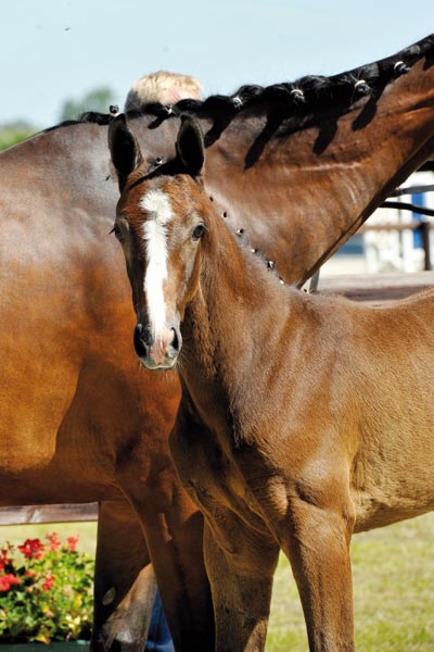 Sportlich aufgemachtes Stutfohlen des Clarimo, der sich durch seine ersten internationalen Auftritte immer mehr in den Vordergrund stellt. Mutter stellte bereits mehrere Auktionsfohlen an dieser Stelle.