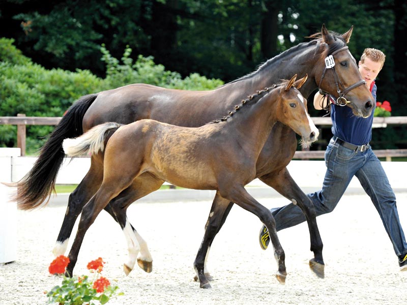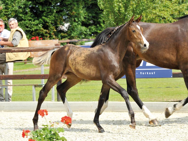 Ein Gipfeltreffen der besten Blutlinien. Stutfohlen mit ganz viel Habitus, gepaart mit exzellenten Bewegungen. Vater Cornet’s Prinz ist bereits 7 jährig int. Siegreich mit Guido Klatte jun.