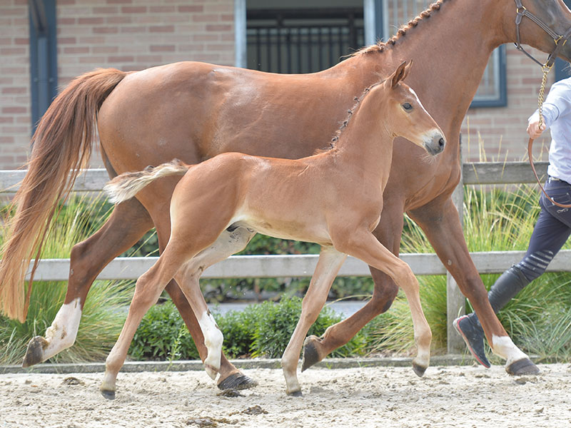 MF. Jumping (1,60 m) S***** Concorde has his jumping genes from both sides. Out of Voltaire are several top Sporthorses and Mother Flyer has 6 successful offspring competing int. His offspring Argento S S***** and Lilibet S** are already successful, too.
